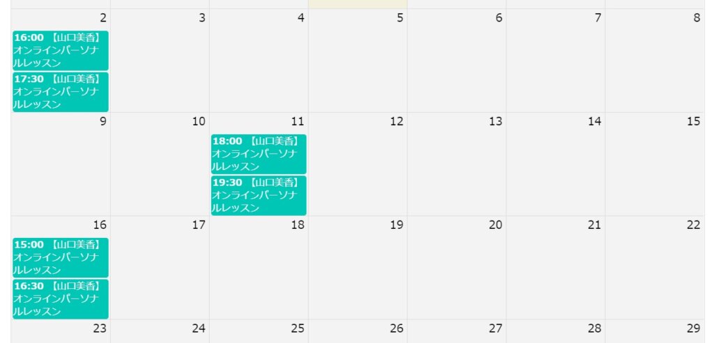 どのくらい少ないかというと、2021年4月時点で予約可能な2021年5月のパーソナルレッスンは各週に2回でした。