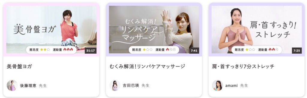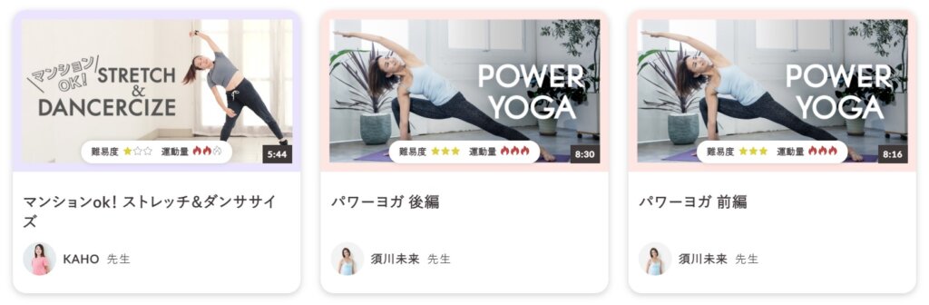 ビデオレッスンはどのプランでも受け放題で、レッスンの種類も幅広いですが、時間が短いので隙間時間にレッスンをするならいいですが、60分時間をかけてゆったり動きたい人には物足りないかもしれません。