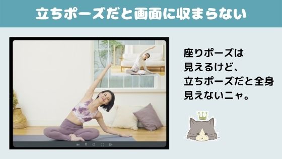 これはどうしようもないんですが、立位のポーズだと画面に収まらず、肩から上は見えなくなります。