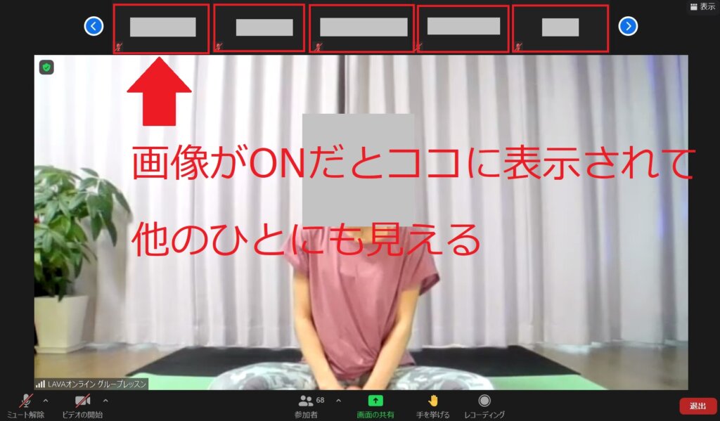 - カメラをONにして講師からポーズを確認してもらえる変わりに、他のレッスン生からも自分の姿が見られるようになる