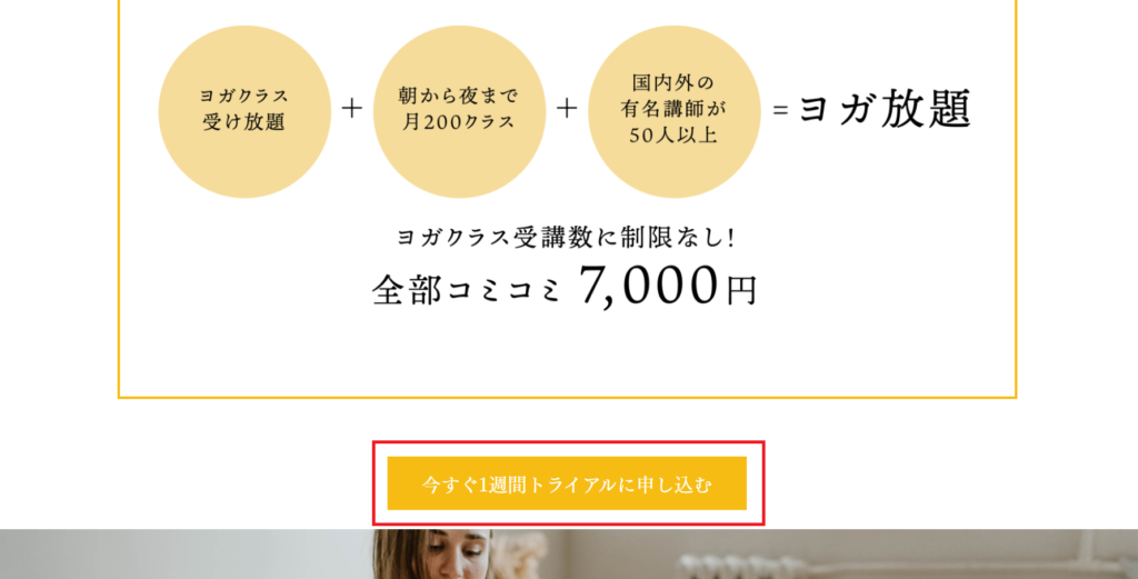 ↓の公式サイトへボタン申し込めるのはスタジオレッスンのついていないヨガ放題のトライアルの方です。
